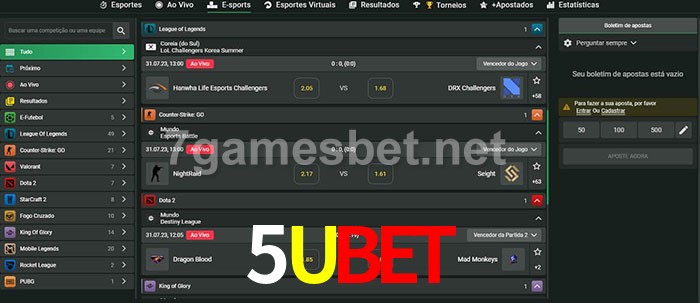 O 5Ubet oferece uma grande seleção de opções de apostas em e-sports com probabilidades competitivas